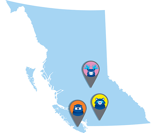 Fernie is a gentle moose who lives in the interior wilderness of British Columbia. Fernie likes to walk on the lake shorelines, eat leafy plants and splash in the water.